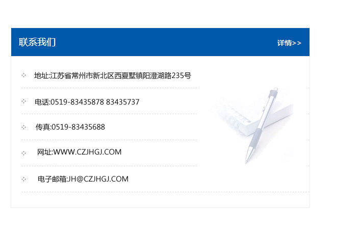 地址:常州市新北區友邦商務大廈1幢16、17層  電話:0519-85101652  傳真:0519-85112595  郵編:213022  網址:www.cz-jiayue_cn.huaguangtz.com  郵箱:xiajifengaa@163.com
